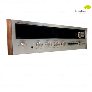 Pioneer SX-525 Receiver De Pioneer SX-525 is een iconische stereo receiver uit de jaren 70, beroemd om zijn zilveren front en houten kast.