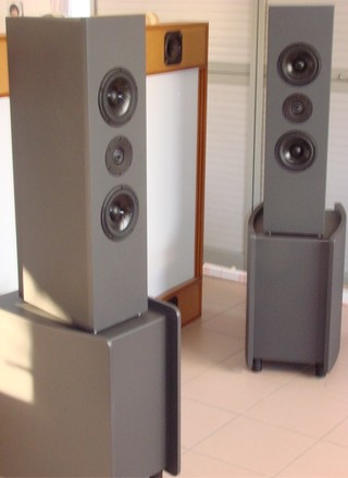 1 paar Scan-Speak Maxima`s in exclusieve uitvoering (met een Seas-driver) als woofer (closed box) Extra RVS (geslepen roestvast-stalen fronten incl.) prijs = vast 1900 euro/pp