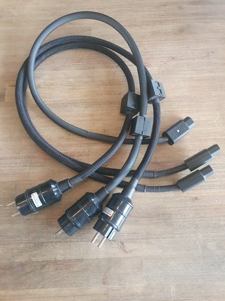 Te koop wegens noodzakelijke aanschaf langere kabels. 3 x 1 meter Casseopeia netkabels. Zeer degelijk afgewerkt en in prima staat. Een serieuze schakel in de hifi/high-end keten. Bieden vanaf € 60,- per stuk. samen € 150,-. Bij verzenden extra kosten koper.