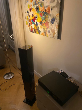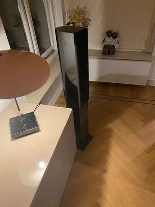 Mooi stukje vakwerk van het Nederlandse merk Millon. Speelt erg goed en staat ook nog eens prachtig in uw kamer wegens de slanke vorm. Door de gebogen kastvorm worden staande golven voorkomen.