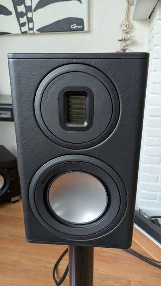 Front van de speakers is van fijn Schots Ingleston-leer.