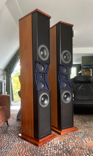 Geheel opgebouwd met Dynaudio en Scan-Speak drivers op specificatie, 5 stuks. Alle drivers zijn in eigen gesloten kamers gemonteerd. Ze zijn ook "getrapt" geplaatst zodat een perfecte timing wordt verkregen. Hoe dat is gedaan kan je bekijken op de bijgevoegde foto`s.