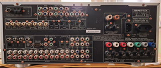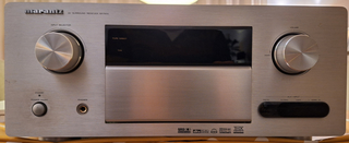 Specificaties: Afstembereik: FM, MW Uitgangsvermogen: 105 watt per kanaal in 8? (stereo) Surround-uitgang: 105W (voor), 105W (midden), 105W (achter) Frequentiebereik: 8Hz tot 100kHz Totale harmonische vervorming: 0,08% Ingangsgevoeligheid: 168mV (lijn) Signaal-ruisverhouding: 105dB (lijn) Digitale ingangen: coaxiaal, optisch Videoverbindingen: component, composiet, SVHS Afmetingen: 440 x 184 x 463 mm Gewicht: 14,8 kg Accessoires: RC8500SR afstandsbediening