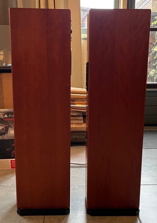 Het gaat hier om een set speakers uit de Sttaf serie in de kleur kersen.