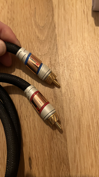 • Originele stereo set, gold plated, met blauwe en rode stekker (makkelijk voor links/rechts)