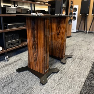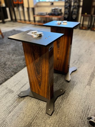 Het gaat hier om een set speakerstands van het type 1QR250 in de kleur rosewood (glossy piano finish) met matzwarte top en onderplaten.