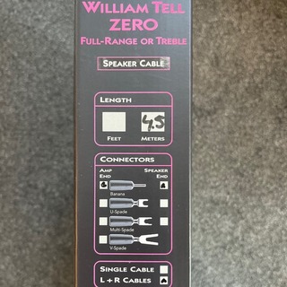Het gaat hier om een William Tell Zero speakerkabelset in de lengte 450cm (dus 2 kabels van 450cm) met een Full Range afwerking (dus aan beide zijden speakerkabel 2 banana pluggen).