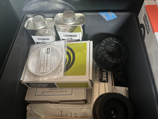 4-sporen A77 MkIII met losse metalen reels, 20 tal lege tapes en een onderhoudsset.