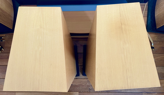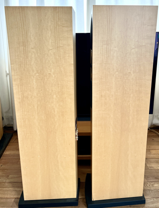 In gebruikte goede staat met lichte gebruikerssporen. (lichte UV-verkleuring aan 1 zijde van beide speakers)