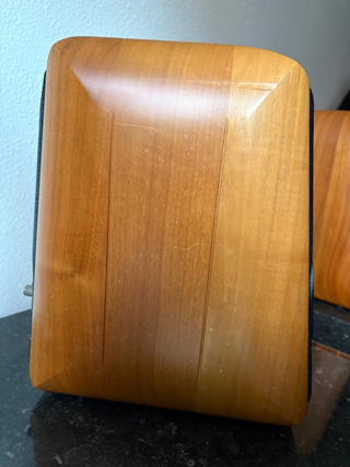 De luidsprekers zijn visueel prachtig, uitzonderlijk vakmanschap! Gemaakt van massief notenhout en leren accenten, waardoor ze zeer fraai passen in het interieur en weinig ruimte innemen, hoge WAF factor daardoor ;-))