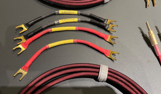 De bi-wire jumperset is van dezelfde bekabeling alleen afgewerkt met gold plated spade connectoren.