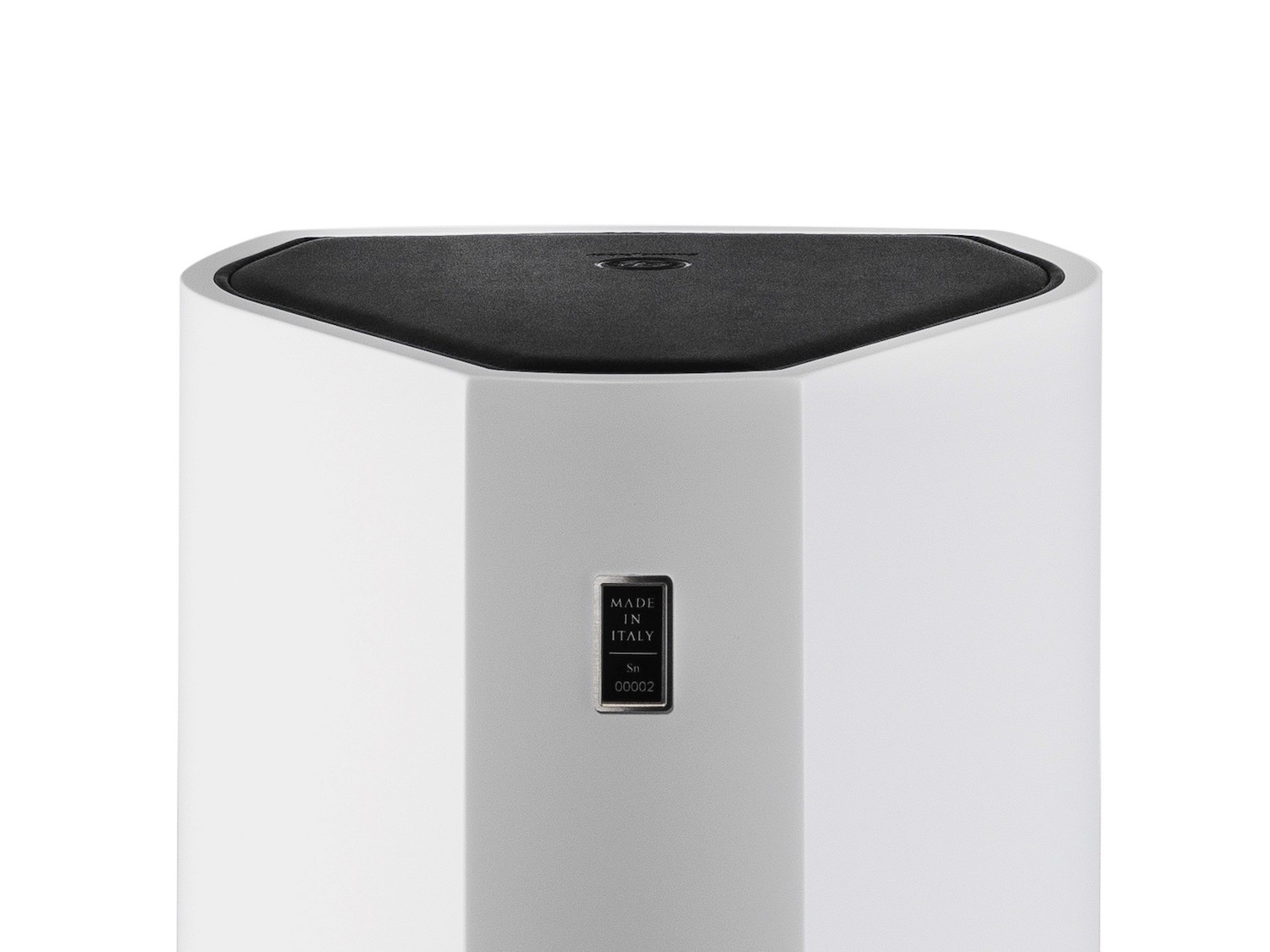 Massief aluminium hardware wordt in het hele ontwerp gebruikt om stevigheid te bieden, maar ook consistentie te handhaven met betrekking tot het bestaande productportfolio. Neerwaarts gerichte reflexpoorten zorgen voor vergevingsgezinde plaatsing in de kamer en consistente basweergave in de luisteromgeving. Afwerking is er in matte white, piano black of wood.
