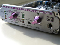 Het is november 2002 als ik met pijn in het hart een digitaal analoog converter van het merk Apogee Electronics retour importeur zie vertrekken. In schreef toen onder andere naar aanleiding van de hoge aanschafprijs van het apparaat dat zowel A/D als D/A conversie verzorgt: “Stel nu eens dat Apogee een converter uit zou brengen die geen A/D conversie in zich heeft. Dan zou de prijs een flink stuk kunnen zakken en meer in de buurt komen van het voor mij maximaal haalbare.” Mijn wens lijkt verhoord te worden als de Mini-Dac op de site van Apogee is aangekondigd en ongeduldig blijf ik alert of bij TM Audio tot de eerste doosjes arriveren. Nauwelijks een dag terug van vakantie blaas ik richting Utrecht en dezelfde middag klinken de eerste noten uit dit 1285 euro ontwerp van Nederlander Lucas van der Mee.